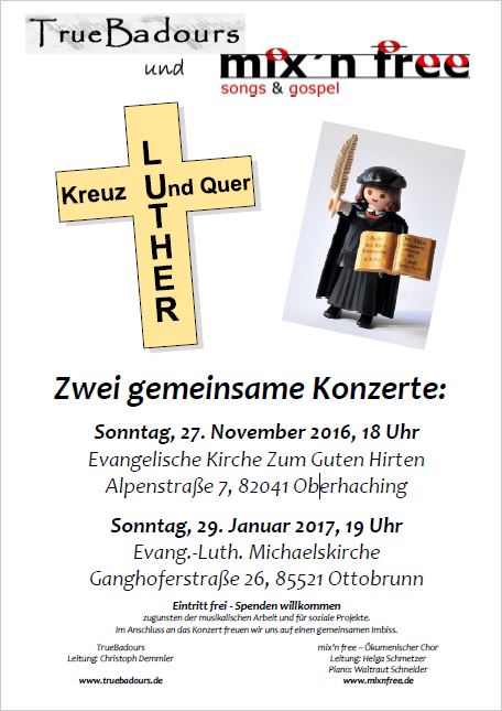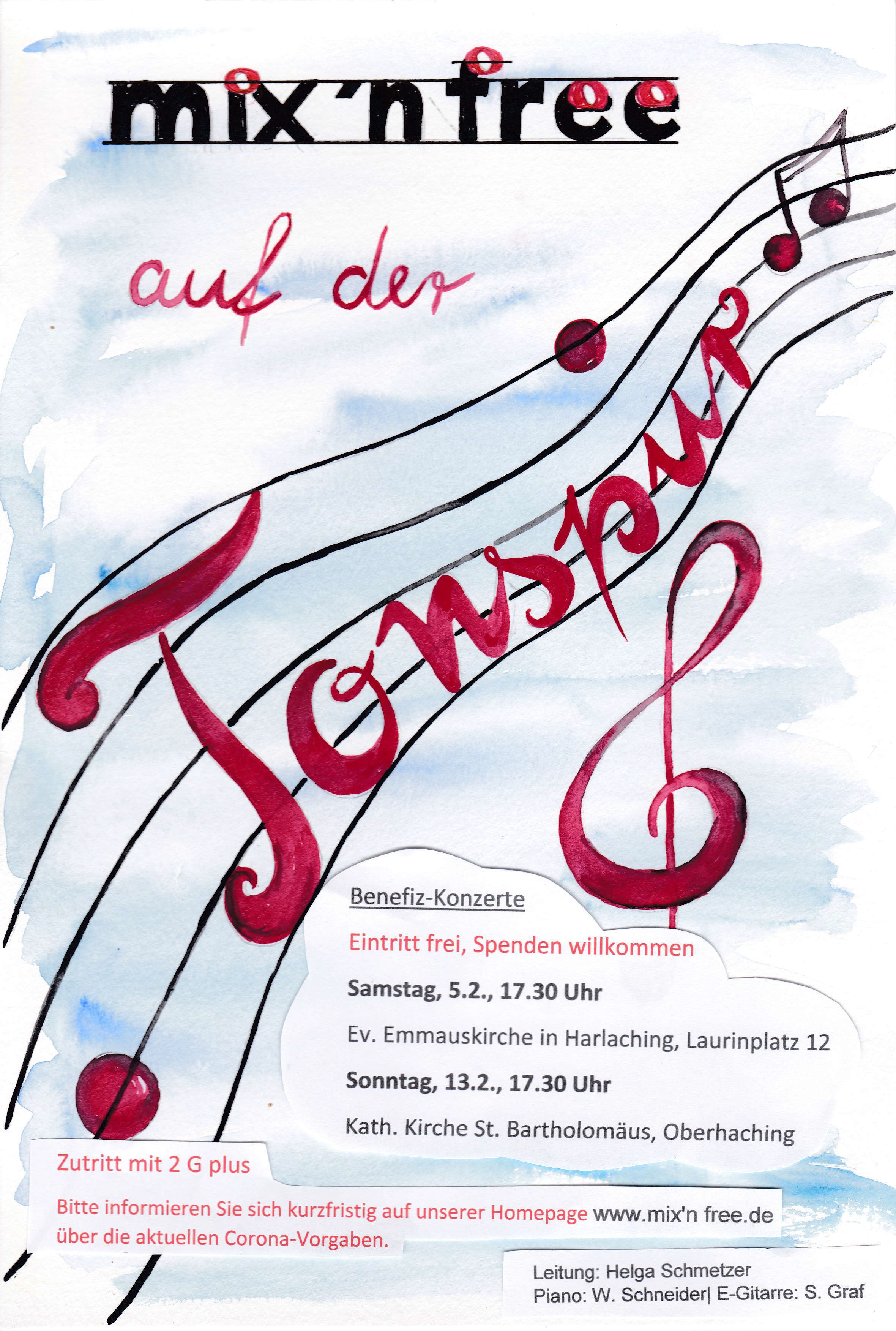 Eintritt frei - Spenden erwünscht - Die Spendeneinnahmen kommen zum Teil der Chorarbeit von mix'n free sowie sozialen Zwecken zugute.