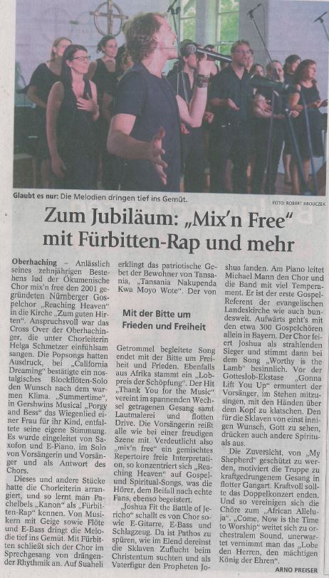Mai 2007 Münchner Merkur 8.5.2007 der Chor MIX'N FREE